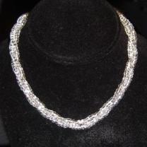 Gently twisted multi strand, silver foil lined crystal Czech glass bead necklace. Chic, subtle sparkle!